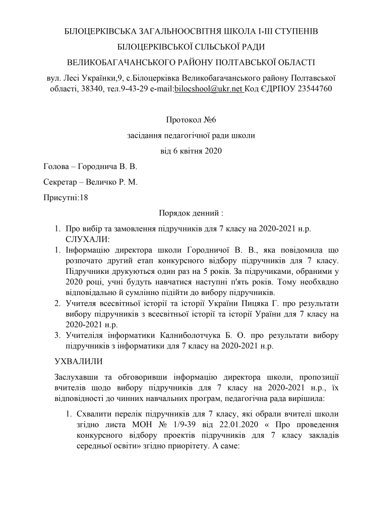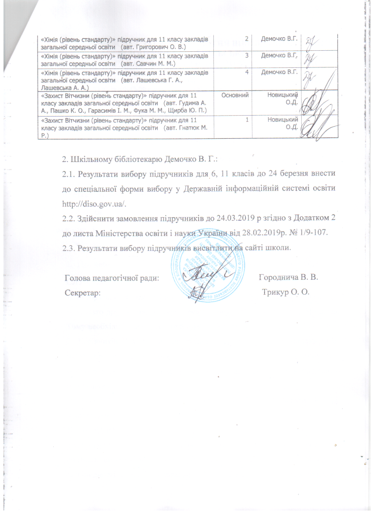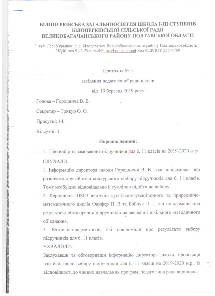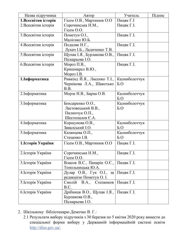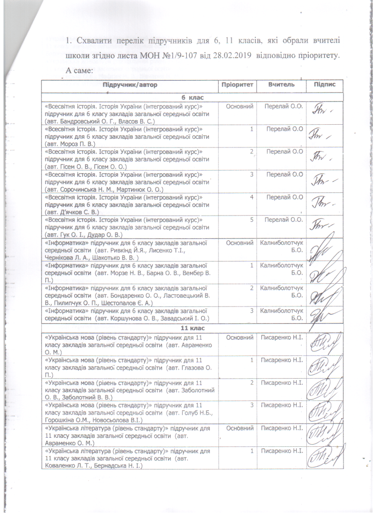 Вибір підручників для 6, 11 класів на 2019/2020 навчальний рік