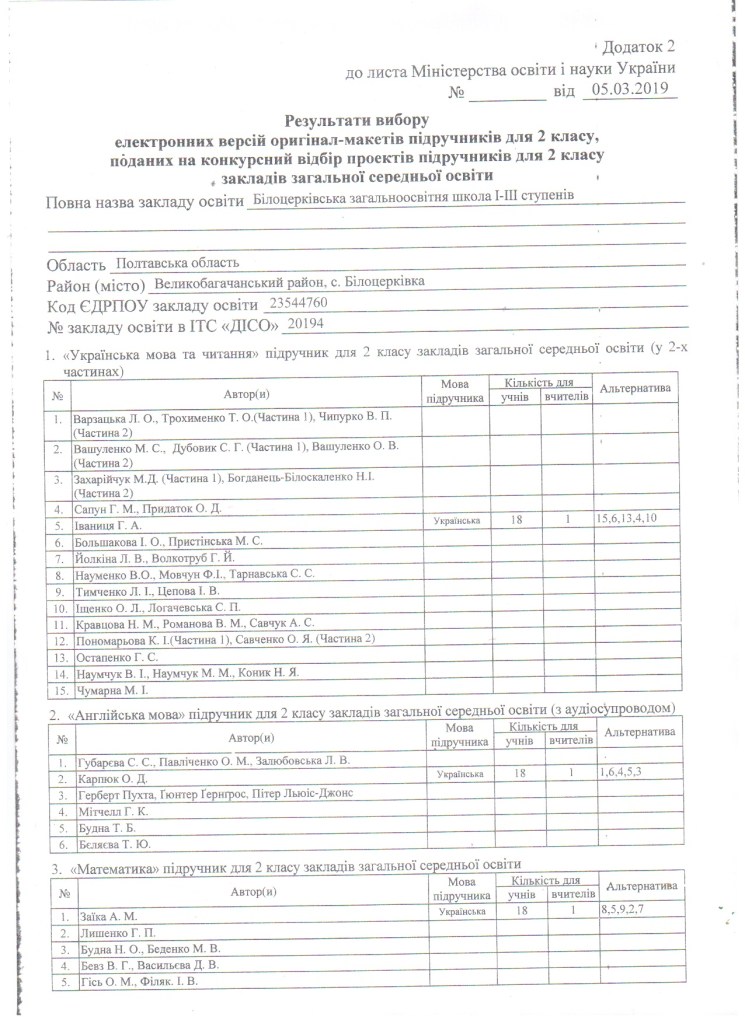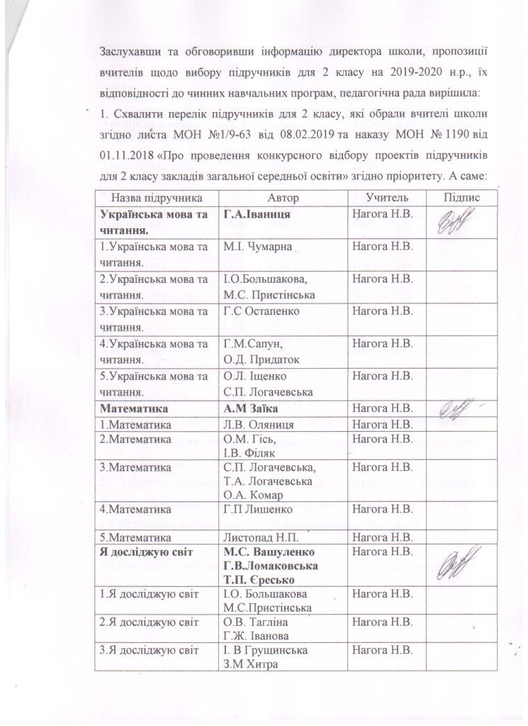Вибір підручників для 2 класу на 2019/2020 навчальний рік