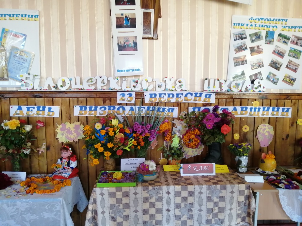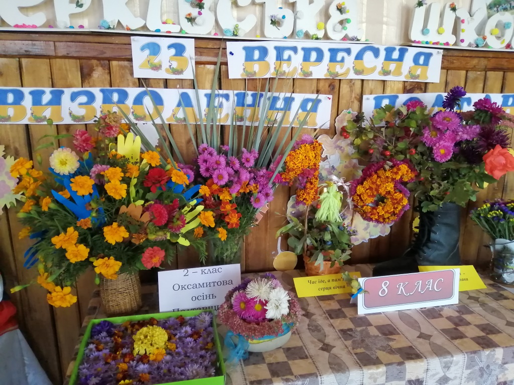 23 вересня відбулася традиційна виставка квіткових композицій, приурочена Дню визволення Полтавщини. До виставки учні та вчителі готувалися заздалегідь. Підбирали ескізи, квіти, назви тощо. У композиціях використали квітковий зріз хризантем і чорнобривців, папір, природні матеріали. Всі учні школи проявили неабияку винахідливість та умілість рук. За працю автори найоригінальніших робіт отримали грамоти.