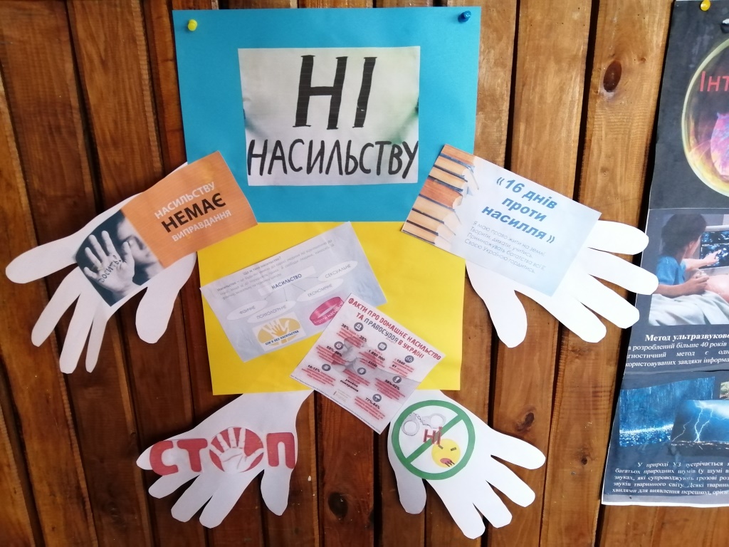 З метою привернення уваги учасників освітнього процесу до проблеми насильства у суспільстві та попередження негативних явищ, що можуть призвести до насилля або спровокувати його вчинення, щорічно в школі проводяться різноманітні заходи у рамках акції «16 днів проти насильства». Період проведення акції є символічним, бо створює своєрідний ланцюжок, поєднуючи заходи проти насильства, боротьби зі СНІДом, рабством та дій щодо захисту прав людини. Саме цим проблемам присвячені заходи, проведені під час акції «16 днів проти насильства».