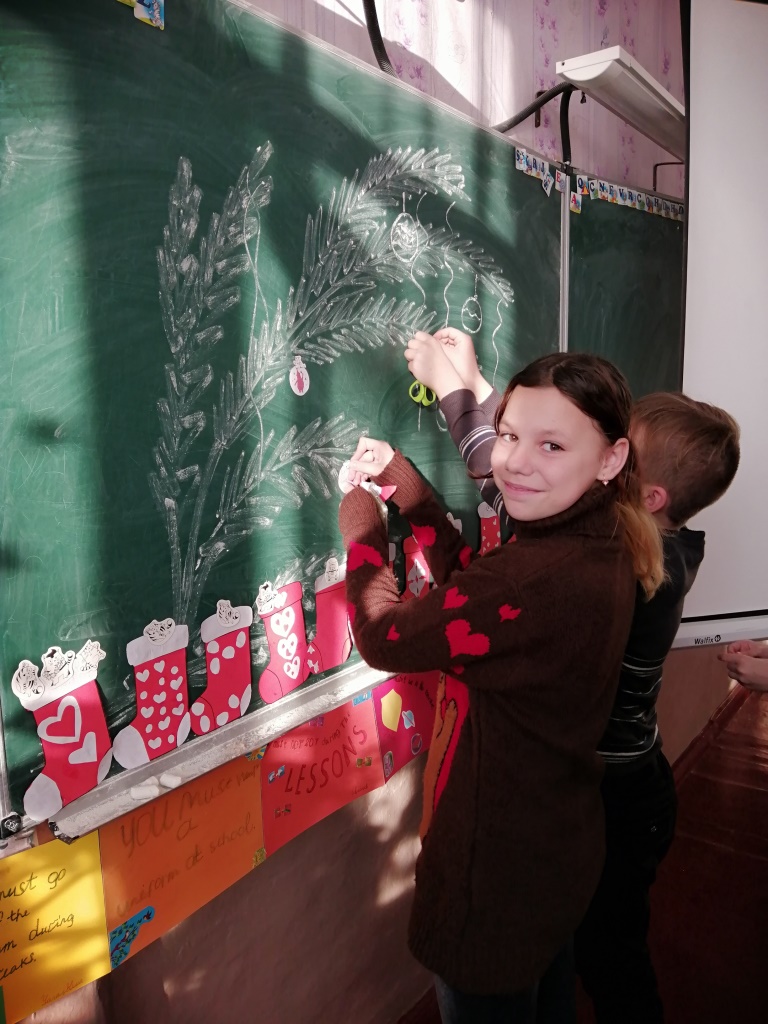 Коли надворі зовсім не зимова погода, а новорічний настрою – хоч відбавляй, то починаємо святкувати. Весело й невимушено відбувся захід «Merry Christmas, Ukraine» для учнів 5-7 класів. Ведучі Леся і Даша ознайомили присутніх із традиціями святкування Різдва й Нового року в різних країнах, пригадали М. Леонтовича та його безсмертну «Carol of the bells» («Щедрик»). Усі учасники потрапили до майстерні «Чобіток» та виготовили різдвяний stocking для подарунків від Santa Claus. Організатор та співведуча заходу – учитель англійської мови Л. І. Бойчук.