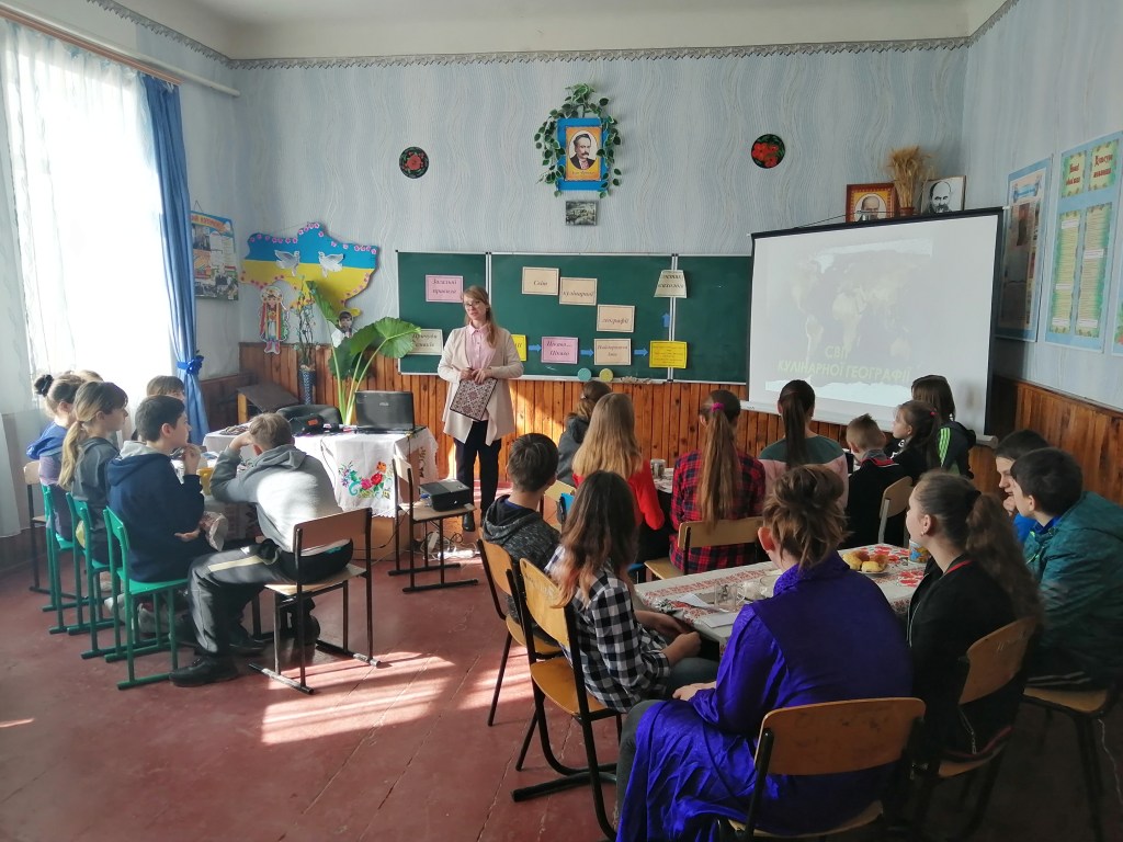 Багата туристична географія. Сьогодні ми можемо відвідати безліч країн. Неповторні пейзажі, історичні пам’ятки, дивовижні рослини й тварини вражають нас, викликають зацікавленість неповторні краєзнавчі об’єкти, люди, традиції, дивують національні кулінарні страви. Учні нашої школи 4 березня здійснили уявну подорож під назвою «Світ кулінарної географії», під час якої говорили не про традиційну кухню, а екзотичну, екстремальну, високу. Отже, перебуваючи в одному місці, за допомогою сучасних технологій побували в різних куточках нашої планети, а на завершення подорожі посмакували чай та дізналися про традиції вживання цього напою у світі.