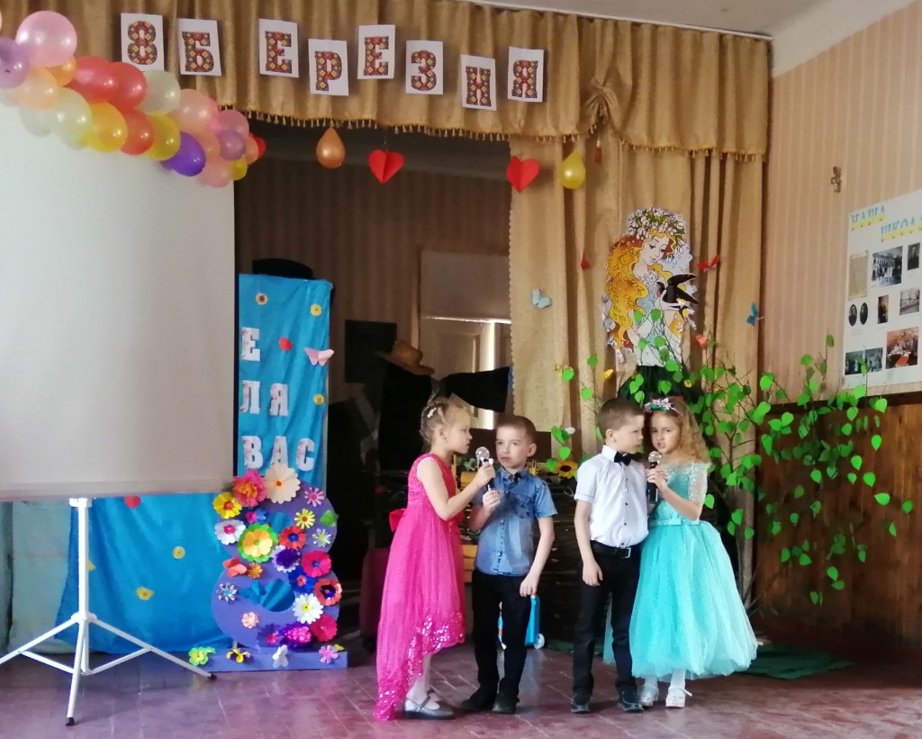 На чудове весняне свято до школи завітали мами й бабусі, сестрички й подруги. Адже діти запросили їх на рейс, що прямує до щастя, успіху, натхнення та здоров’я. Підготували для них слова вітання, запальні танці, гумористичні сценки, історичні фантазії, відеозвернення. Зробити людину щасливою – це найкращий подарунок. Тож діти прагнули подарувати присутнім чудовий настрій, тепло, хвилини радості й любові, тож щасливі посмішки на вустах найдорожчих людей не зникали протягом усього свята.