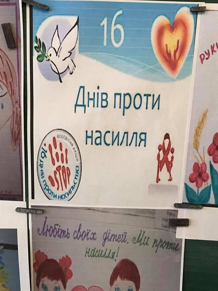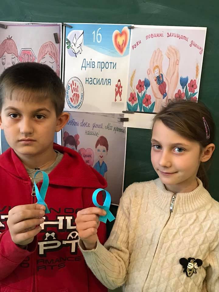 Класним керівником 4 класу Міщенко Л. В. проведено годину спілкування на тему «Ми – проти насилля!» Обговорили різні життєві ситуації, заповнили анкети. Учні виготовили символічні сині стрічки, висловивши таким чином нетерпиме ставлення до будь-яких форм насильства.