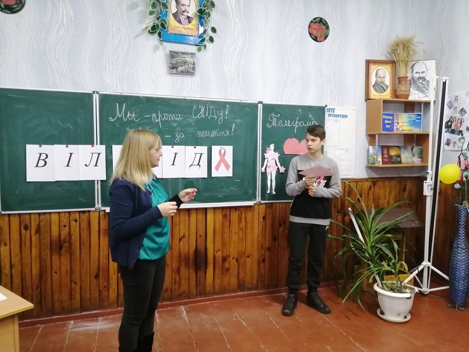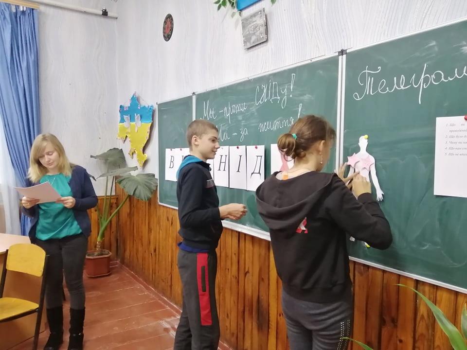 Щорічно 1 грудня в усьому світі відзначається Всесвітній день боротьби зі СНІДом. Всесвітній день боротьби зі СНІДом – це ще одна нагода привернути увагу суспільства до проблем ВІЛ-інфікованих, замислитись над тим, як запобігти поширенню хвороби та згадати про важливість її вчасної діагностики. З учнями 8 класу (класний керівник Трикур О. О.) було проведено годину спілкування з елементами тренінгу на тему «Ми – проти СНІДу! Ми – за життя!»