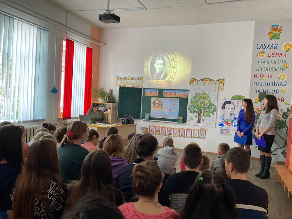 Сьогодні вся шкільна родина відзначила 150-річчя з дня народження видатної української письменниці Лесі Українки. Діти переглянули документальний фільм, відеопоезії, дізналися про цікаві факти з біографії та творчості поетеси, поглянули на письменницю очима сучасника. Для учнів старших класів проведено гру «150 слів про Лесю Українку». Готувалися до свята заздалегідь. Вихованці групи продовженого дня виготовили плакат співпраці «Портрет Лесі Українки». Було створено «Літературну яблуню життя і творчості» письменниці, а також нагороджено сертифікатами учасників конкурсу «Змагаймось за нове життя». Вивчали творчість Лесі Українки й на уроках математики.
