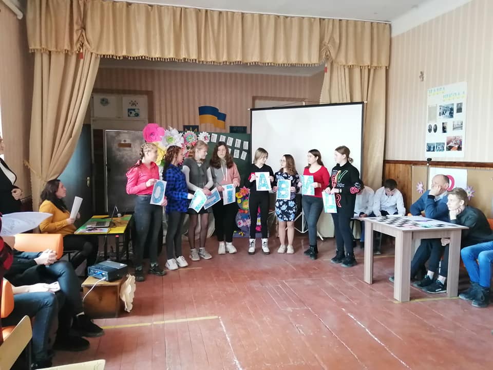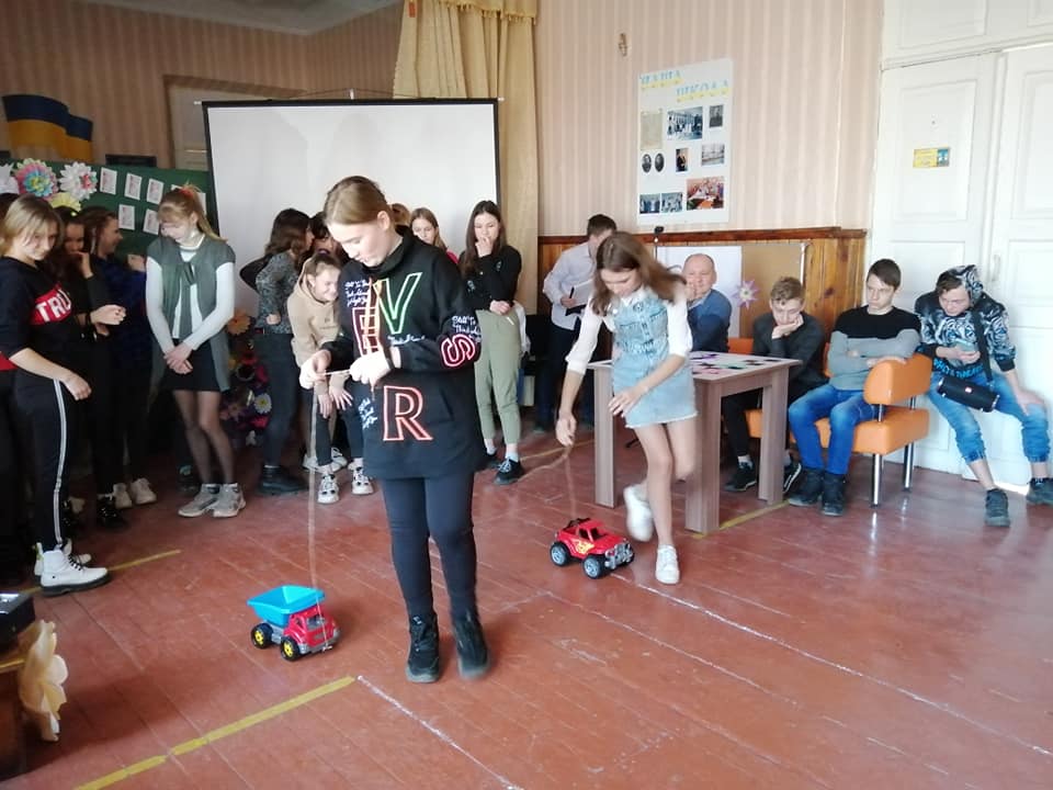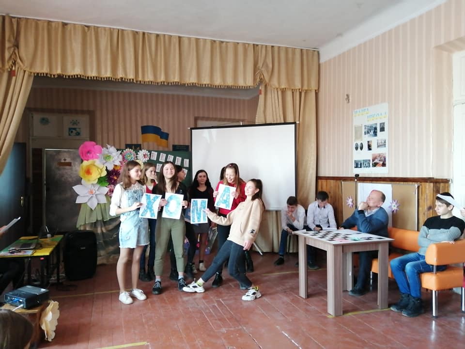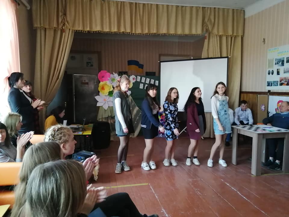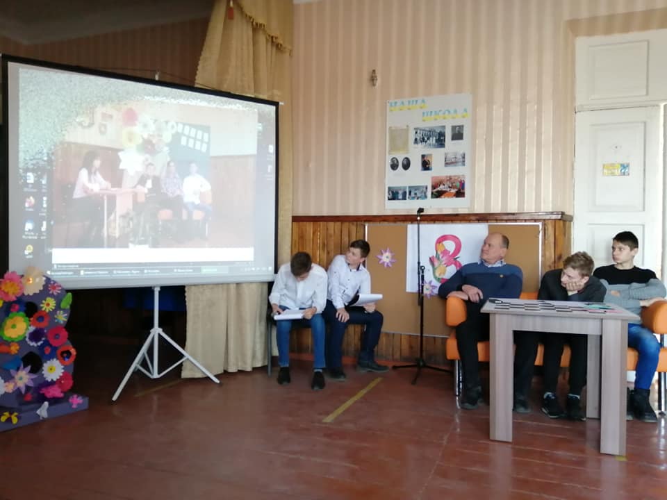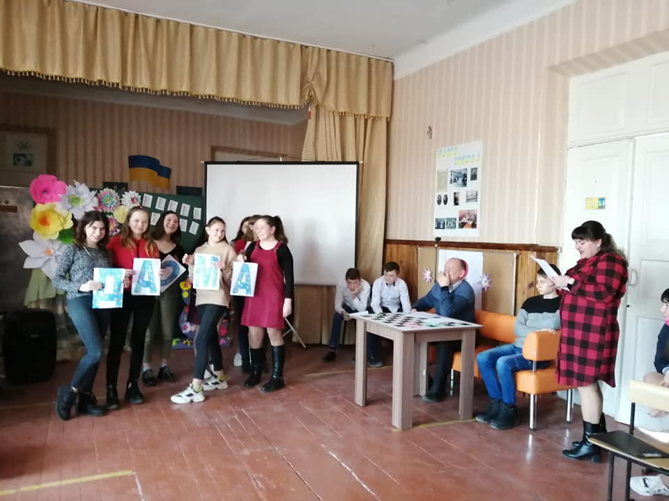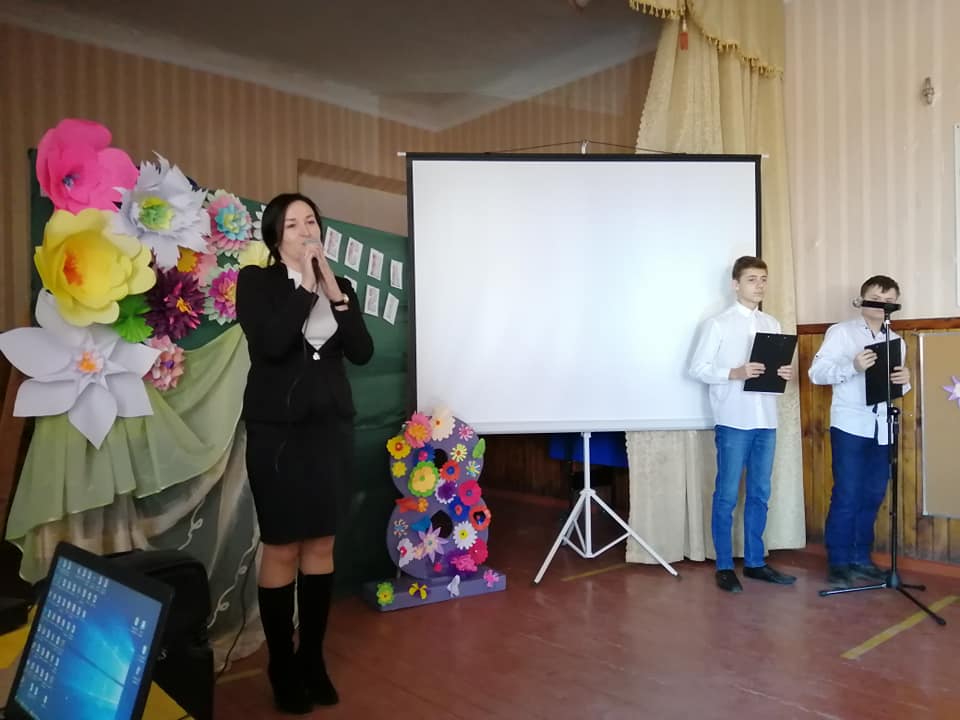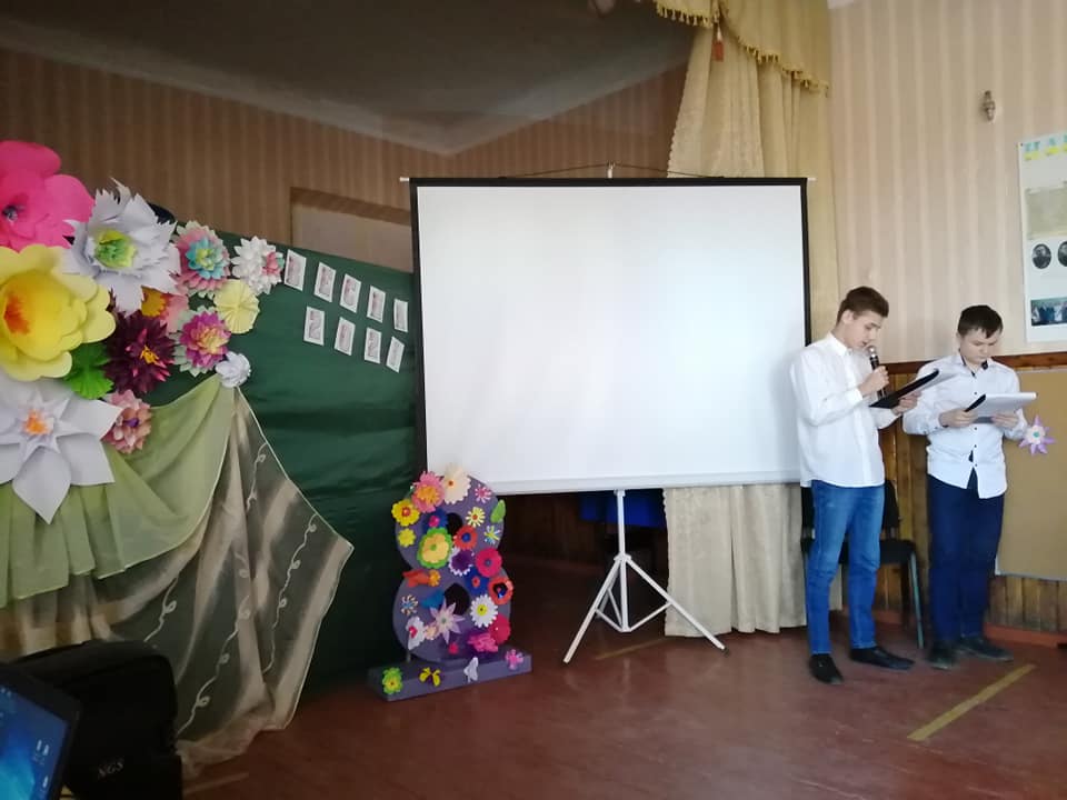 Розважально-конкурсну програму провела для учнів 7-11 класів педагог-організатор Мазур Є. В. Ведучі дійства Красуля Володимир та Деркач Григорій привітали присутніх жінок із Міжнародним жіночим днем, а дівчата, об’єднавшись у дві команди, продемонстрували чудову гру.