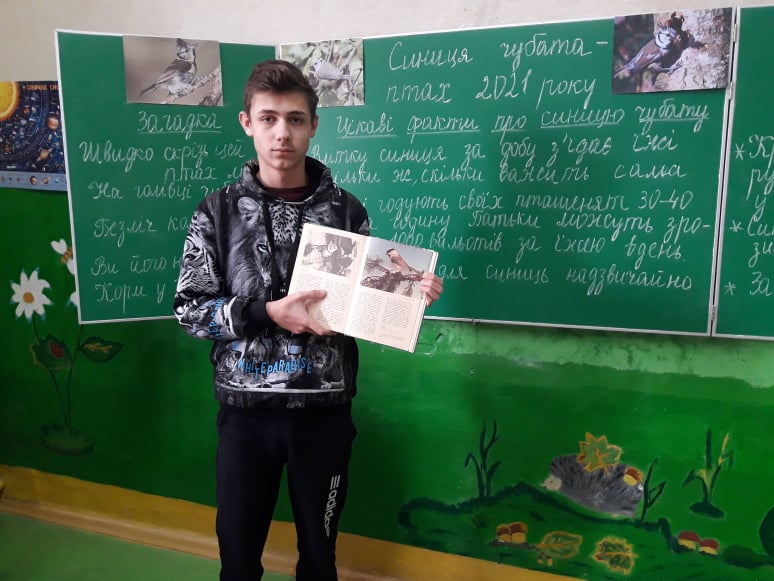 Українським товариством охорони птахів синицю чубату визнано птахом року-2021. Григорій Деркач уже розпочав спостереження й дослідження за цими птахами. Пам’ятаючи про те, що птахам не такий страшний холод, як голод, він підгодовує їх у власноруч сконструйованих годівницях. Долучилися цього року до участі в акції й учні 5 класу. Вивчаючи різноманітність тварин, вони спільно з Григорієм підготували проєкт «Синиця чубата – птах 2021 року»: дізналися про особливості будови та процесів життєдіяльності цих птахів, складали вірші, грали в ігри, читали казки, скоромовки, розгадували загадки про синицю чубату, відшукували прислів’я, приказки, малювали малюнки. Результати досліджень презентували у Міжнародний день птахів. Дорогі друзі, оберігайте птахів! Вони вам за це віддячать весною, знищуючи шкідливих комах.