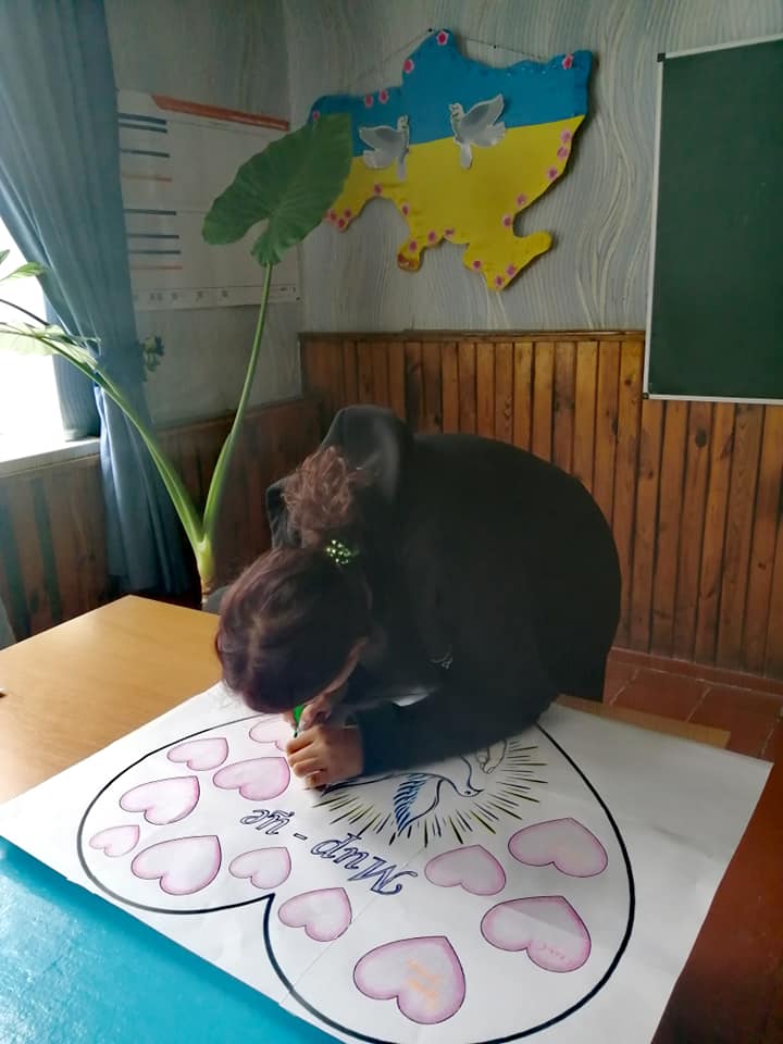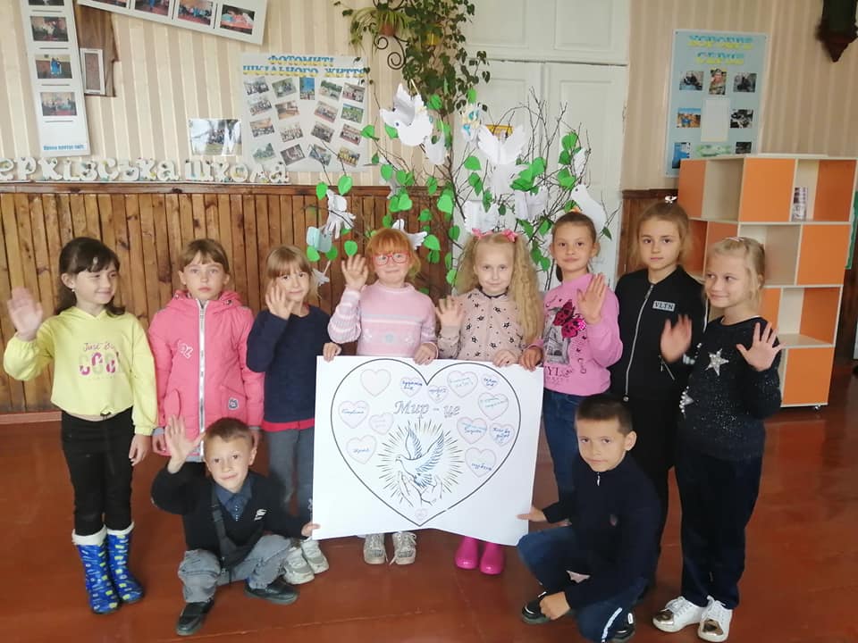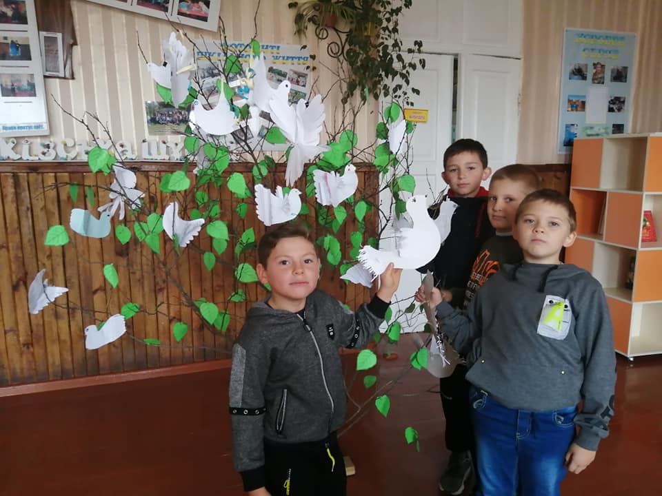 Міжнародний день миру відзначають у всьому світі з 1981 року за ініціативи Генеральної Асамблеї ООН. Досить часто ми сприймаємо мир як повсякденну реальність і не замислюємося над тим, що ж означає це слово для тих людей, які щодня чують під вікнами своїх будинків вибухи. Привернути увагу до проблеми миру – ось основна мета мистецької акції «Мир потрібен, як життя», проведеної у Білоцерківському закладі освіти. Упродовж дня діти виготовляли білих голубів – символ миру. Створюючи спільно асоціативне ґроно, учні обговорили проблему миру, з’ясували, що це поняття багатогранне, адже важливими є і мир у душі людини, і мир у родині, і мир у рідній Україні… Можливо, дитяча творчість для когось – лише забавка, але вона має глибокий зміст і виражає заклик відмовитися від насильства й вогню, вирішувати проблеми шляхом мирних переговорів і компромісних рішень.