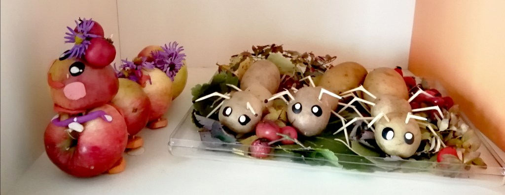 Сьогодні осінь завітала до найменших учнів школи й принесла щедрі подарунки – овочі та фрукти. Тож, окрилені творчістю й осінньою красою, діти створили чудові композиції. Затишна українська оселя, казкові персонажі народилися з дитячої уяви.