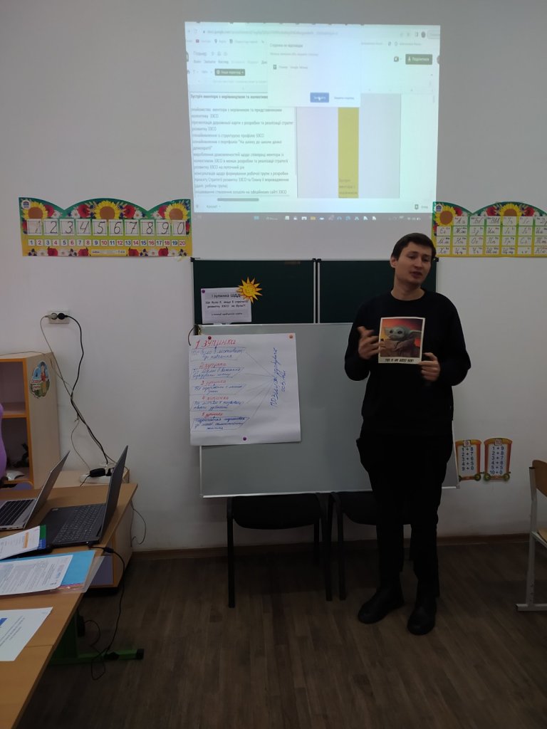 На першій зустрічі ментори ознайомили колектив ліцею що таке стратегія розвитку та принципи її впровадження. Провели цікаву колективну роботу в групі, де кожний учасник зміг висловити свою думку та представити роботу команди. Дякуємо за цікаву та змістовну зустріч. А ми починаємо працювати .